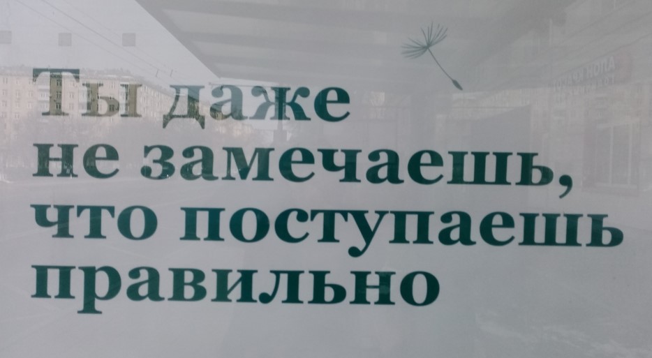 Лично я собираюсь ввязаться в это масштабное приключение, внимательно и благодарно изучать все, что оно принесет, найти в этом себя и реализоваться в новых обстоятельствах. Как-то так я подумала. И тут же на остановке увидела рекламу — мне одобрение: