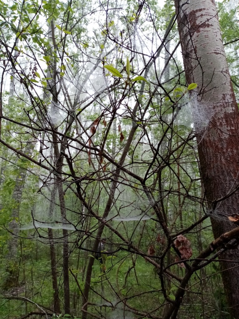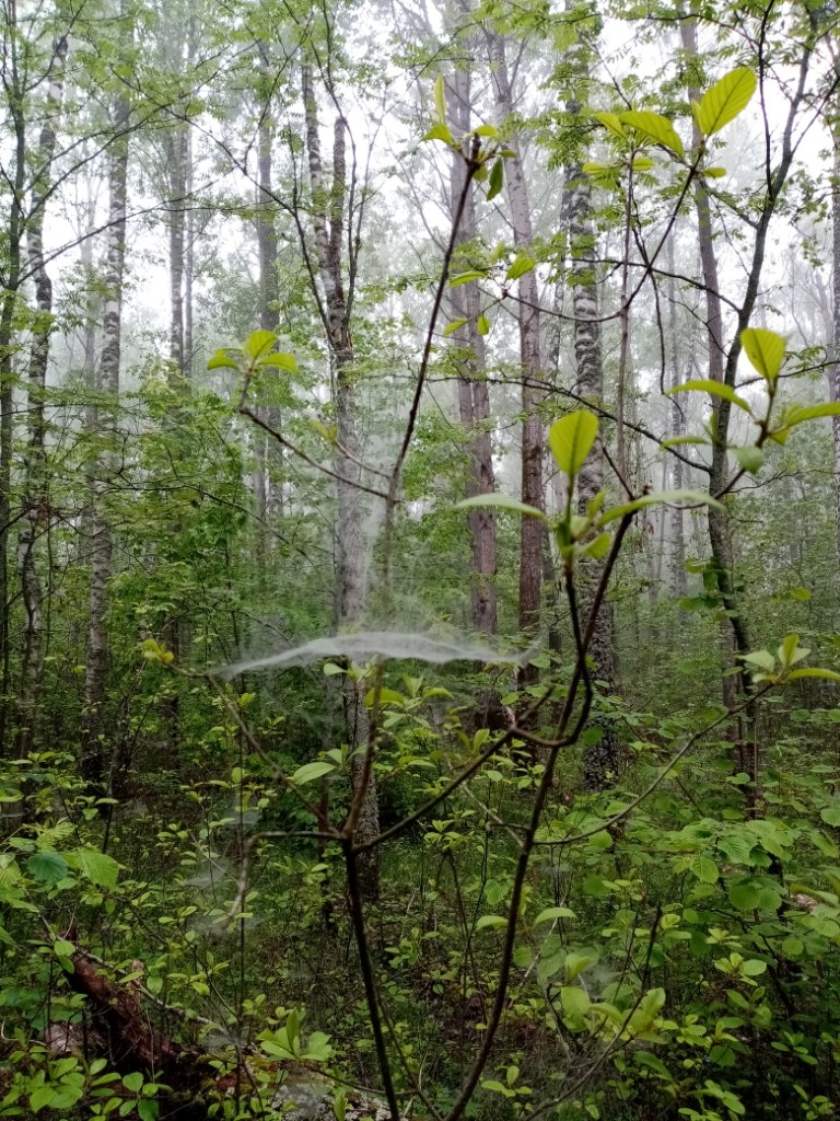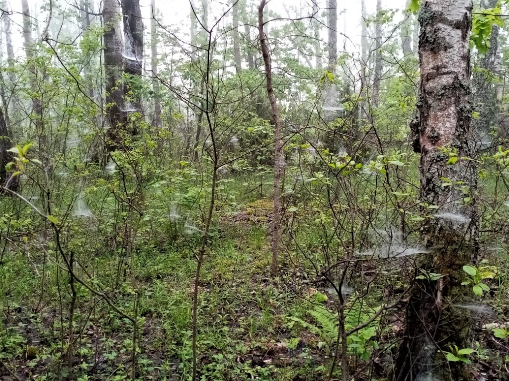 А пока он спал, пауки раскинули повсюду маленькие невесомые гамаки — между ветками деревьев, кустами, даже между травинками.