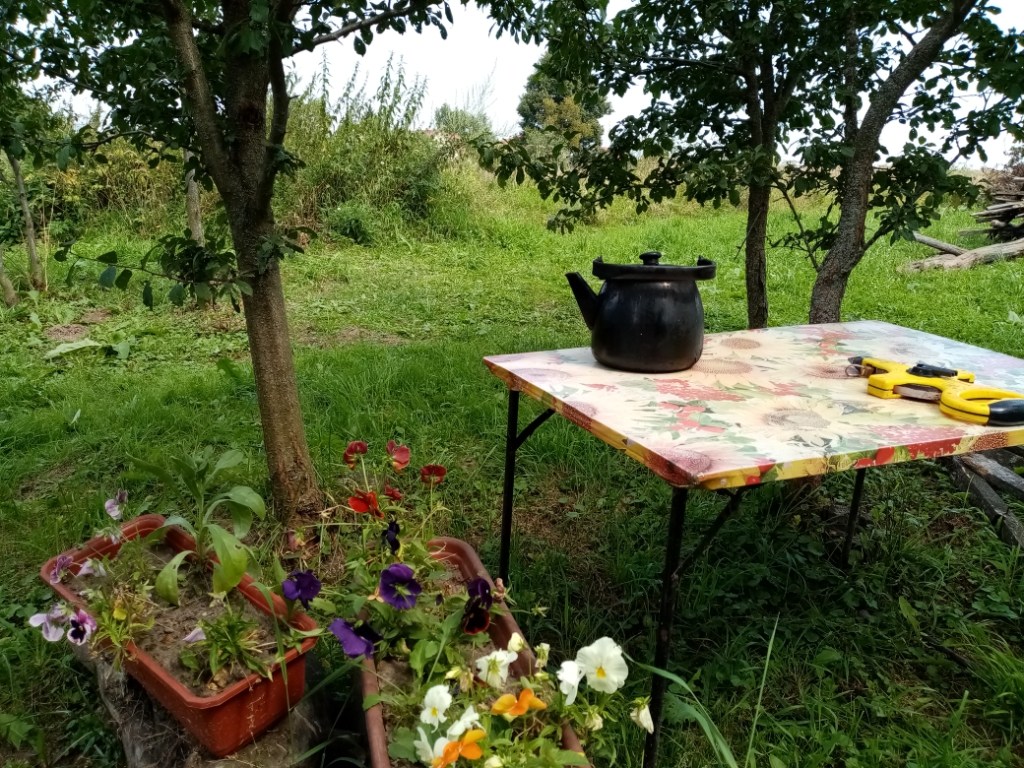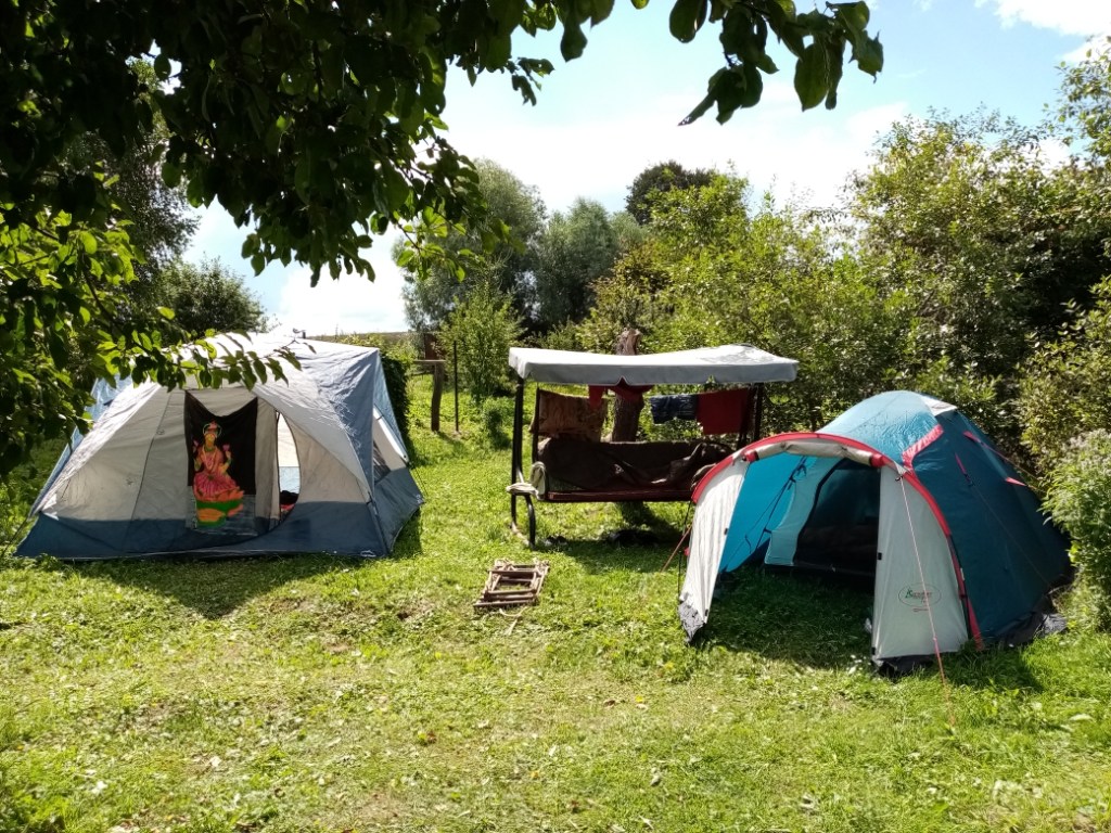 Между яблоней и сливой натянули гамак. У качелей поставили две палатки, а сами качели утеплили спальным мешком. Под боком Газели подвесили бак с водой — руки мыть, наверху закрепили фонарь – вечернее освещение. Большой стол — чтоб за ним обедать, маленький — чтобы на нем готовить.
