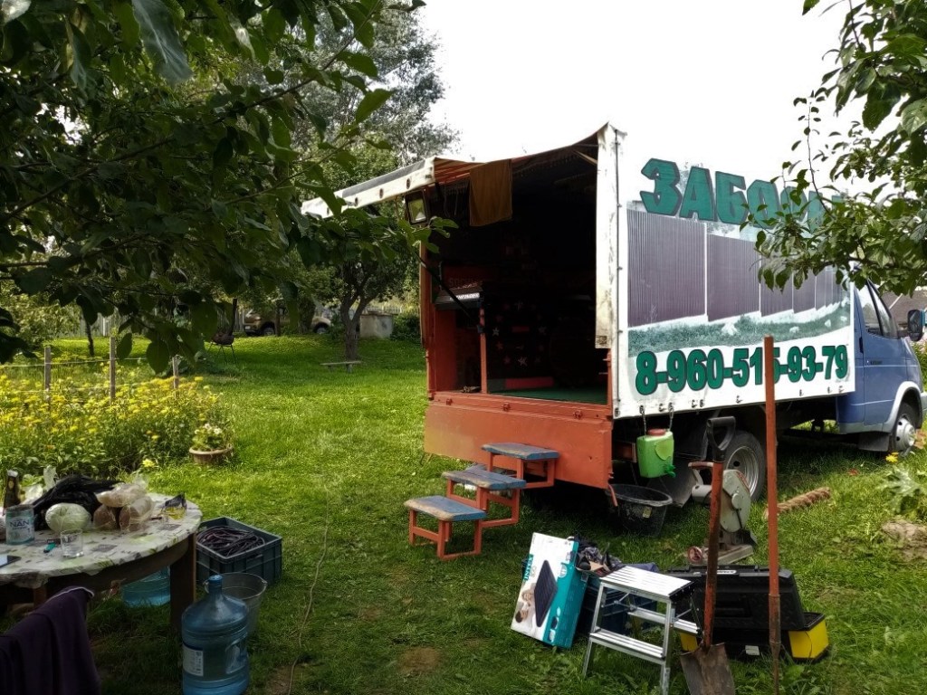 Мы подъехали к дому, и я сразу увидела эту громоздкую Газель, стоящую прямо в центре моей лужайки. И разложенные вокруг вещи нее – какие-то сумки, тюки, банки, сетки, инструменты…