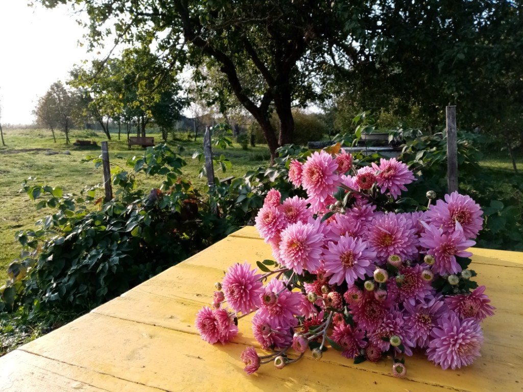 Мое деревенское утро начиналось рано. Я медленно вплетала себя в наступающий день. В ветки яблонь, в тугие лианы бутылочной тыквы, в веревку с мокнущими на ней прищепками, в спутанные полоски еще не выкошенной травы, в низкие кустики базилика и высокие, с бледными метелками, стебли пряной мяты.