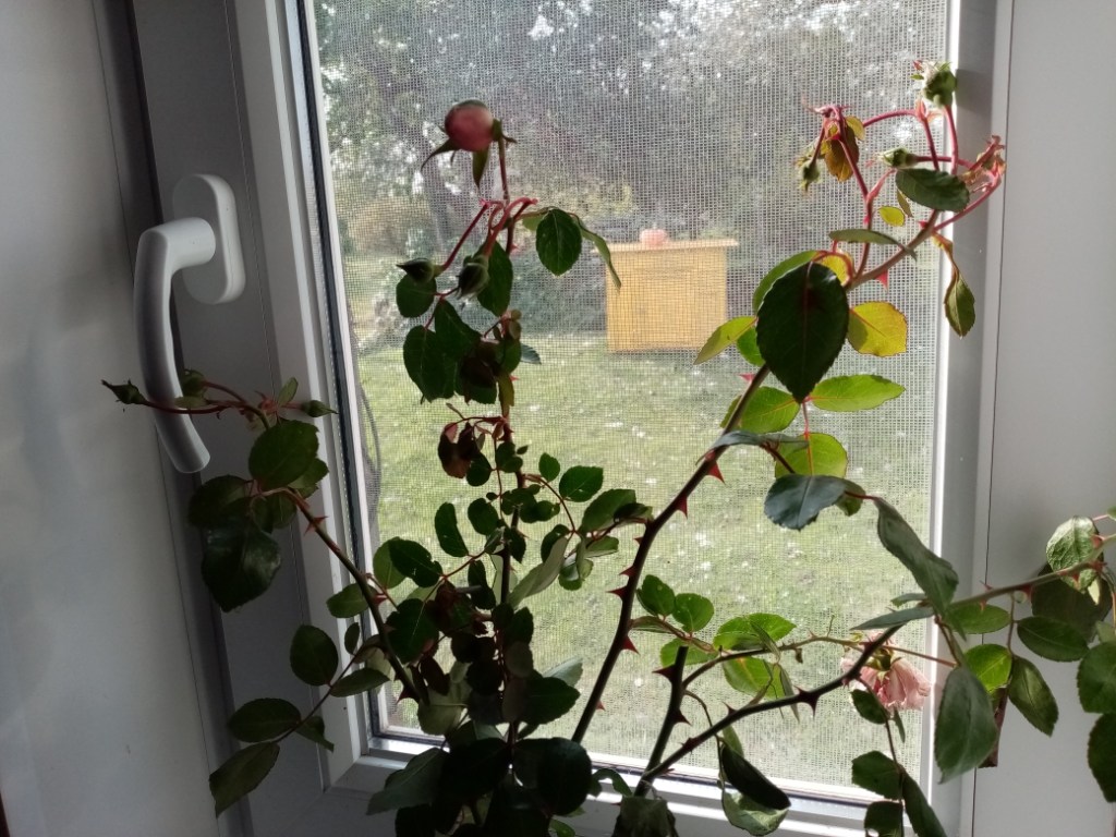 К зиме обрезали розы. Мне было жаль выбрасывать обрезанные стебли с бутонами. Поставила их пока в стакан с водой. На подоконник.