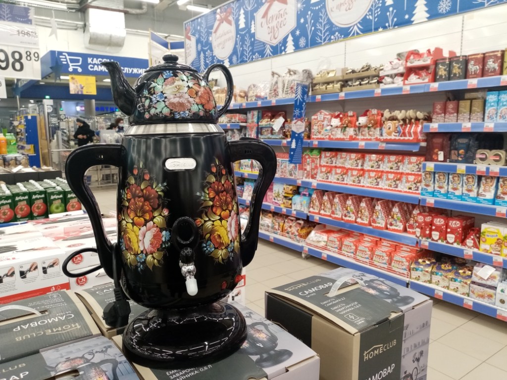 Пошли в супермаркет за продуктами и увидели там самовар.