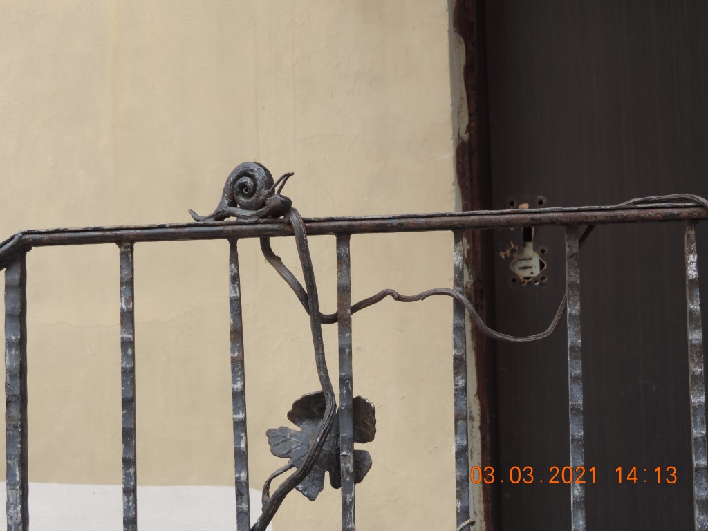 Интересно, кто придумал поселить ее здесь, на металлических перилах у обычной железной двери с торца обычного жилого дома?