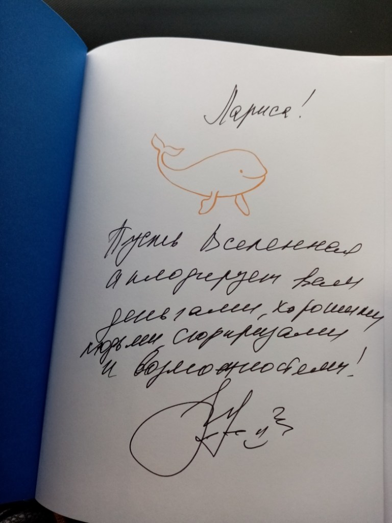 Это что же получается? Все сошлось: Мужицкая приехала по своим делам в издательство, я в этот момент позвонила, под рукой оказались книги, одну из которых она мне тут же и подписала. Да еще и на видео это подтвердила.